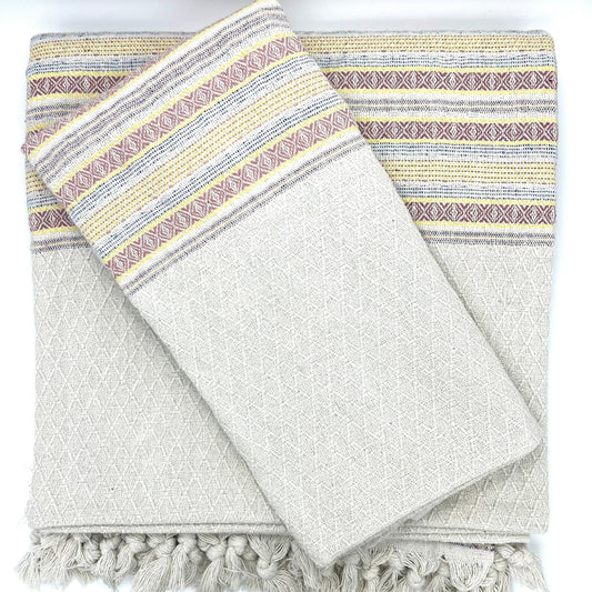 Tagesdecke | Bettüberwurf | Sofaüberwurf | 240 x 240 cm | 100% Baumwolle | Natur mit farbigen Linien