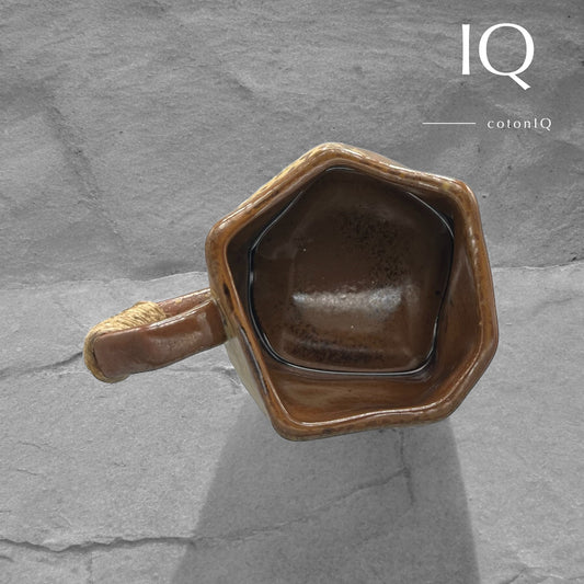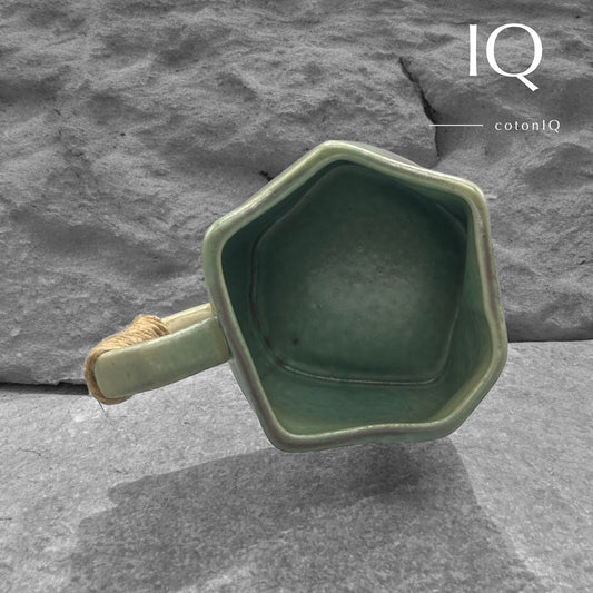 Designer-Keramiktasse mit geometrischem Griff – Grün und Braun – 235 ml
