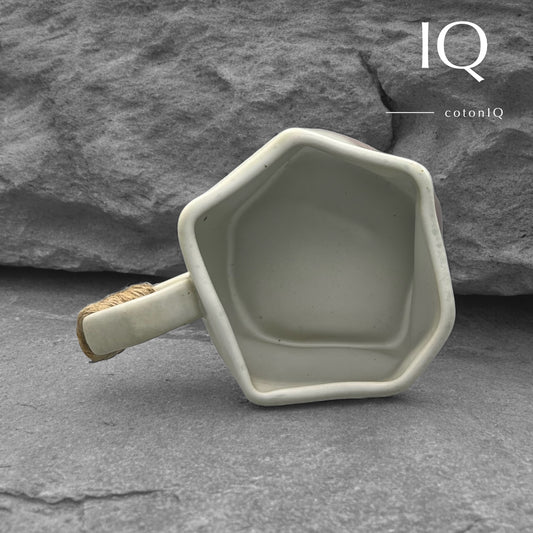 Designer-Keramiktasse mit geometrischem Griff – Beige und Braun – 235 ml