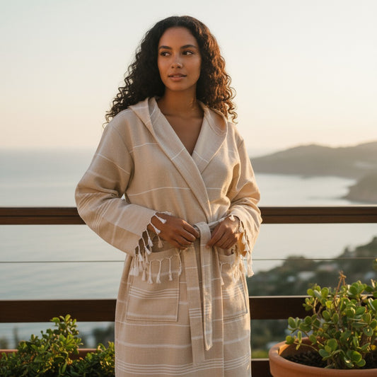 Oversized Bademantel aus 100 % Baumwolle in Beige