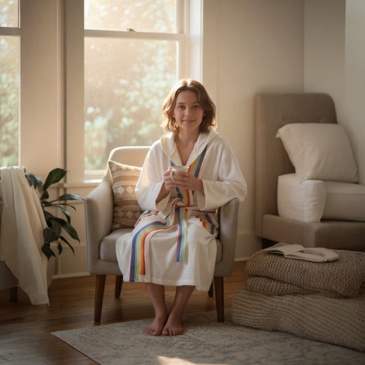 Kinderbademantel aus 100 % Baumwolle mit Regenbogen-Design