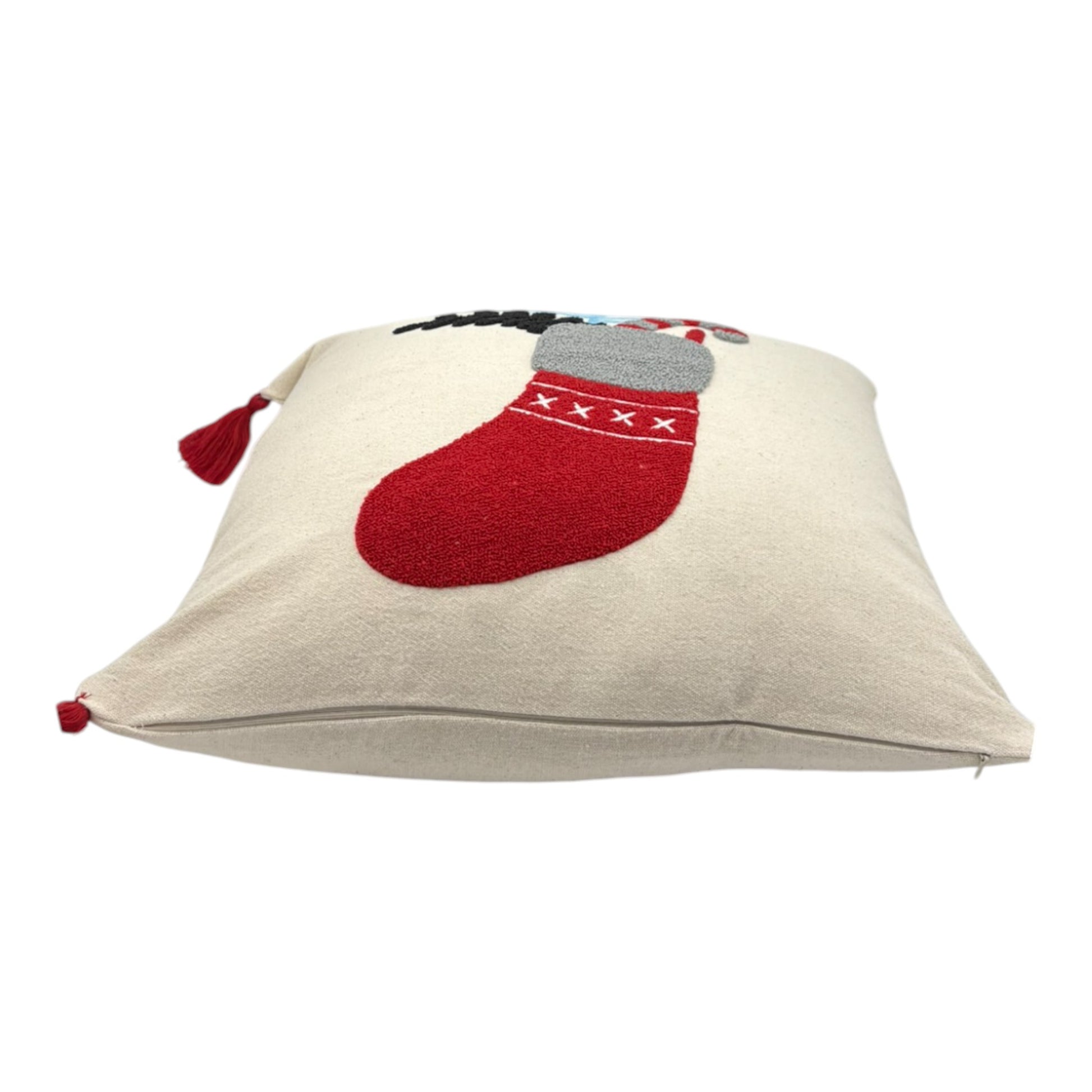 Dekokissen mit Punch Stickerei - Weihnachten - Weihnachtssocke - 43 x 43cm